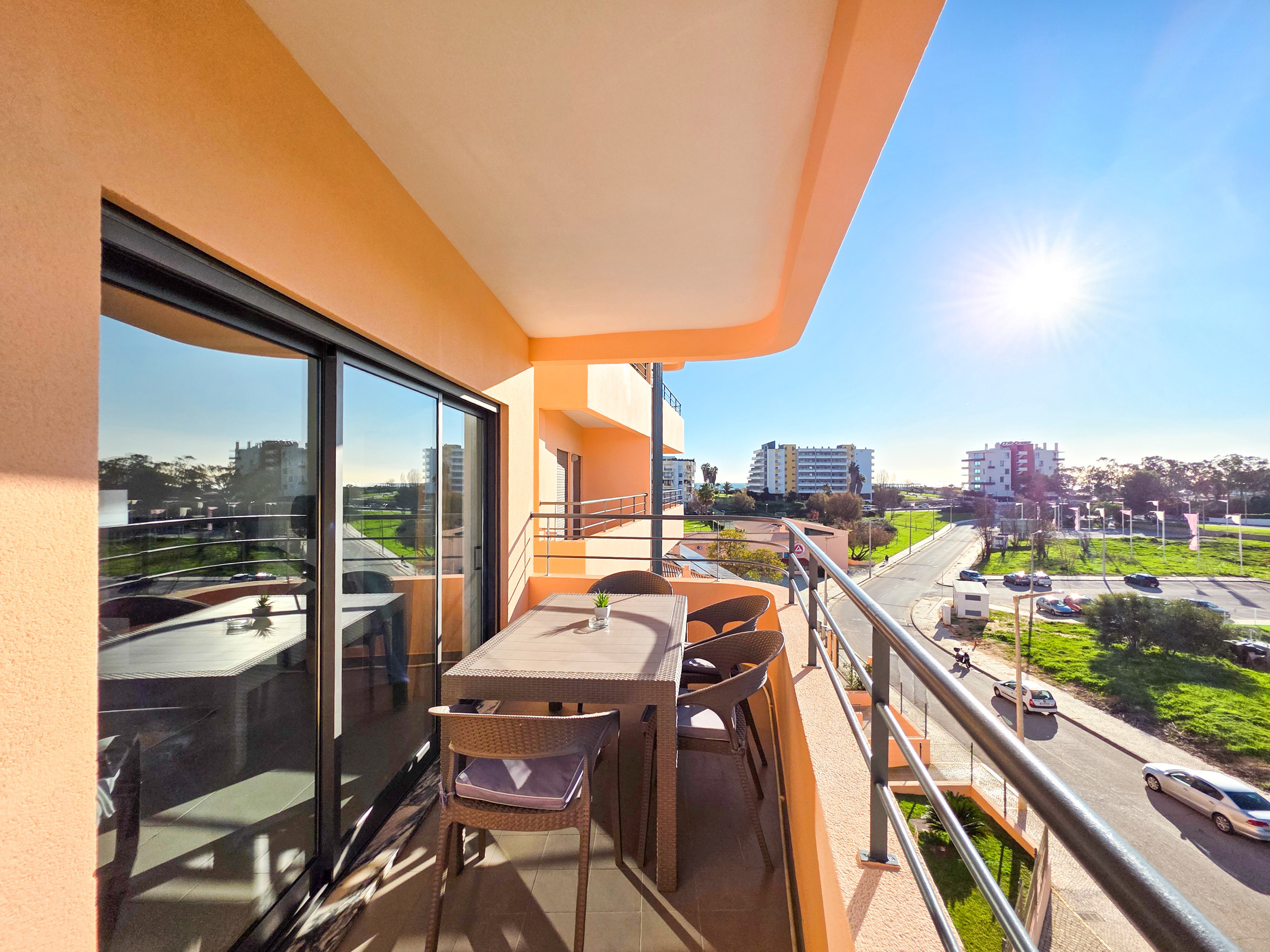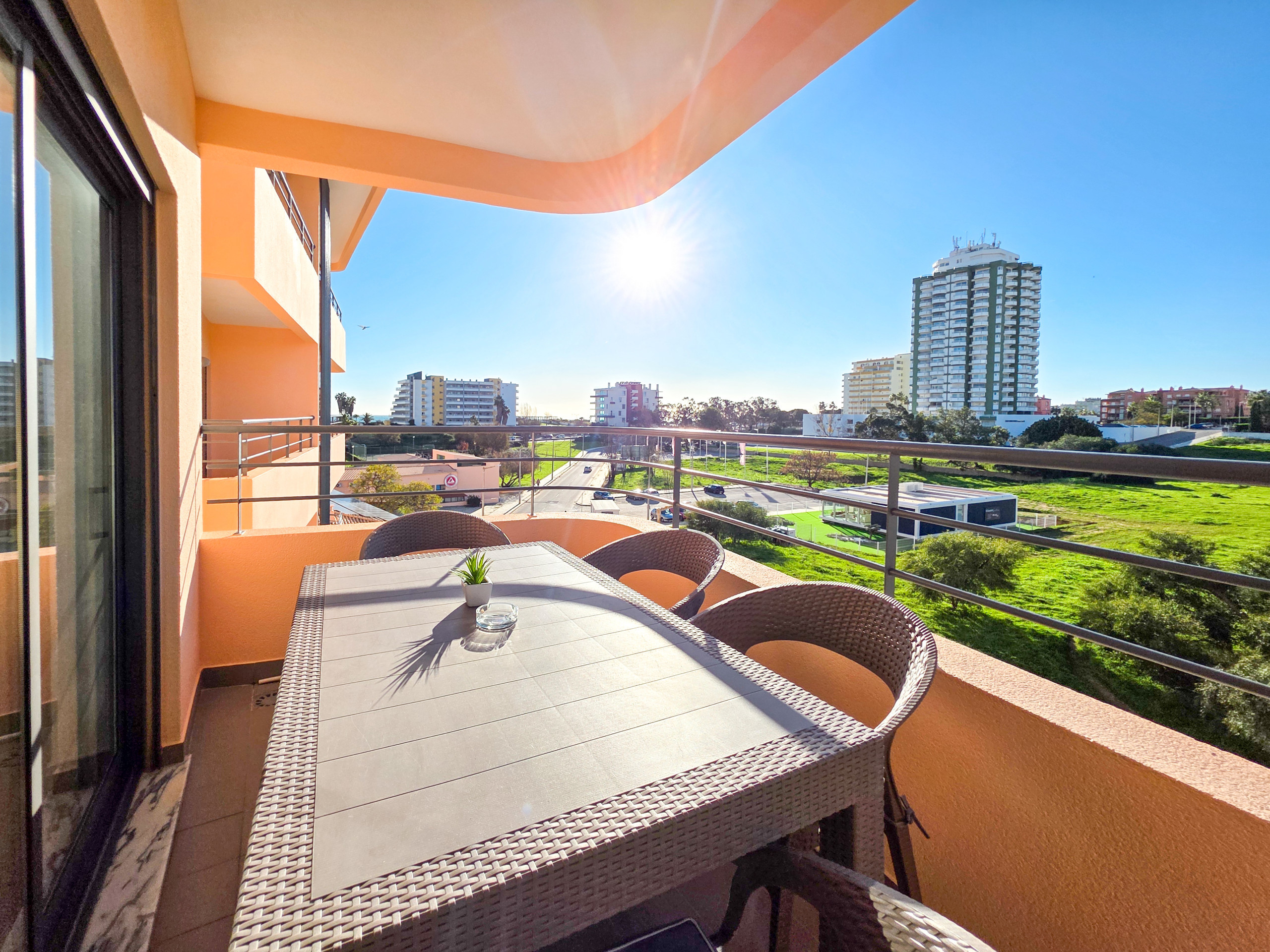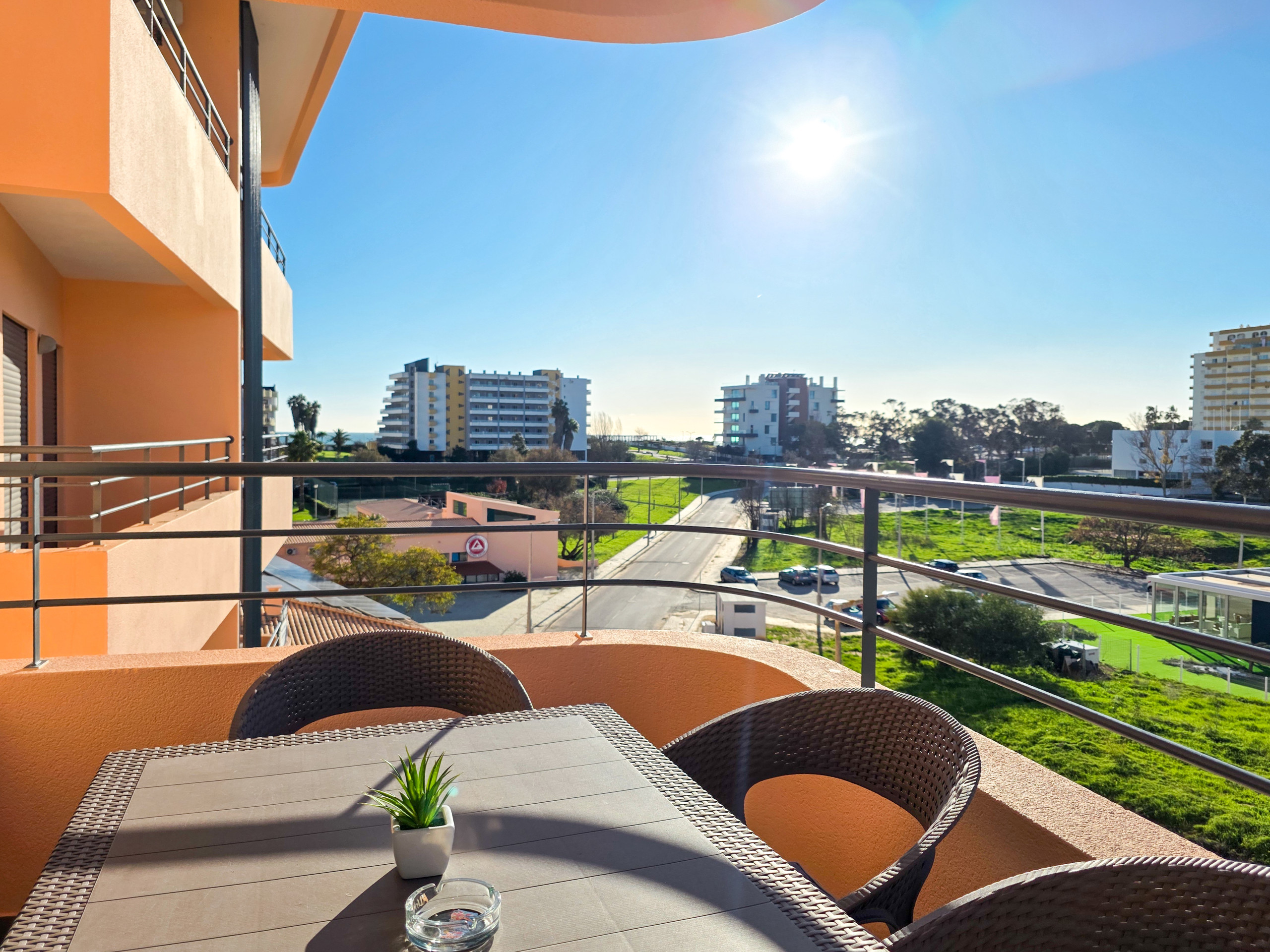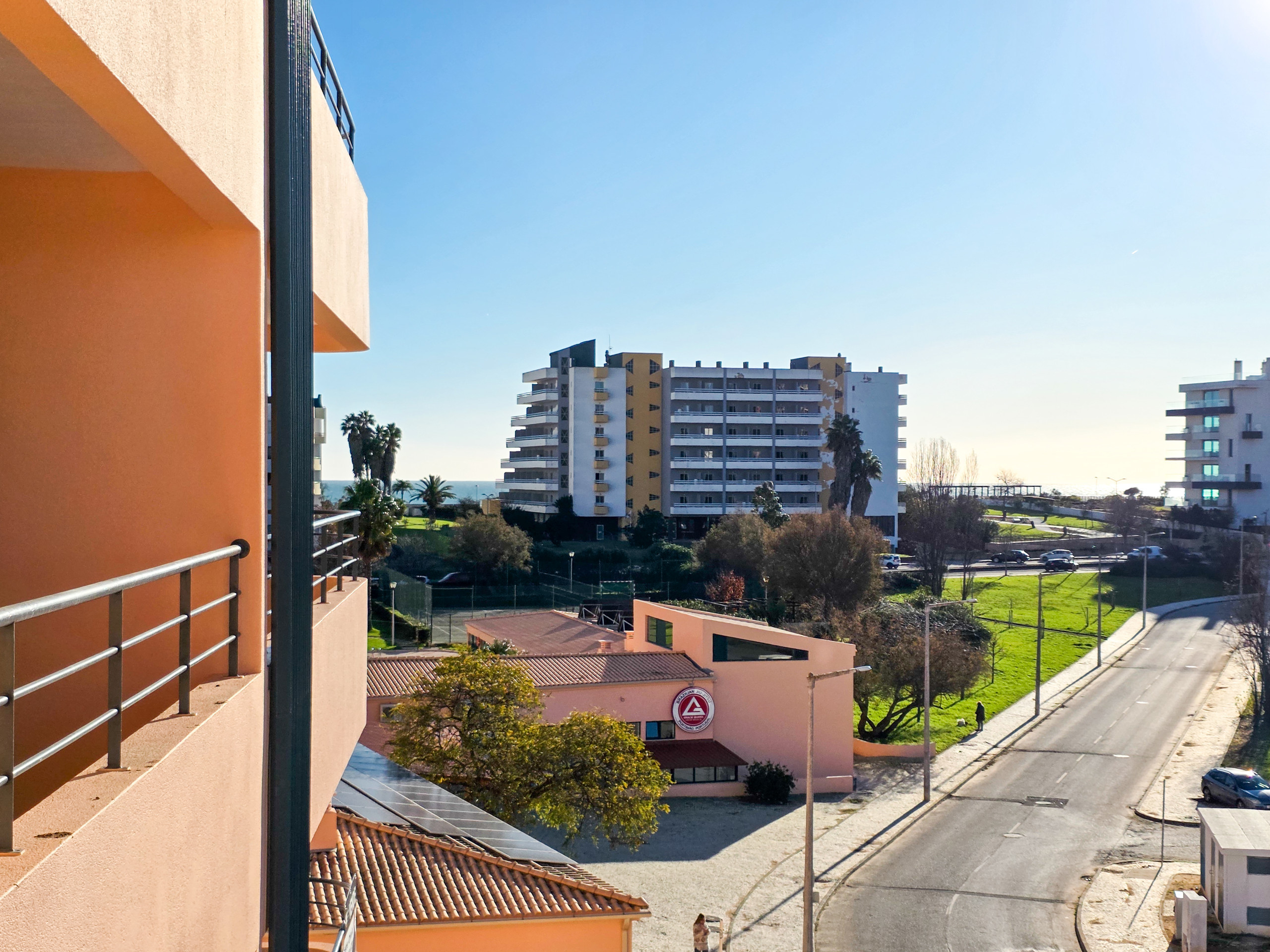 The bedroom and living room have access to a balcony with a view of Praia da Rocha.