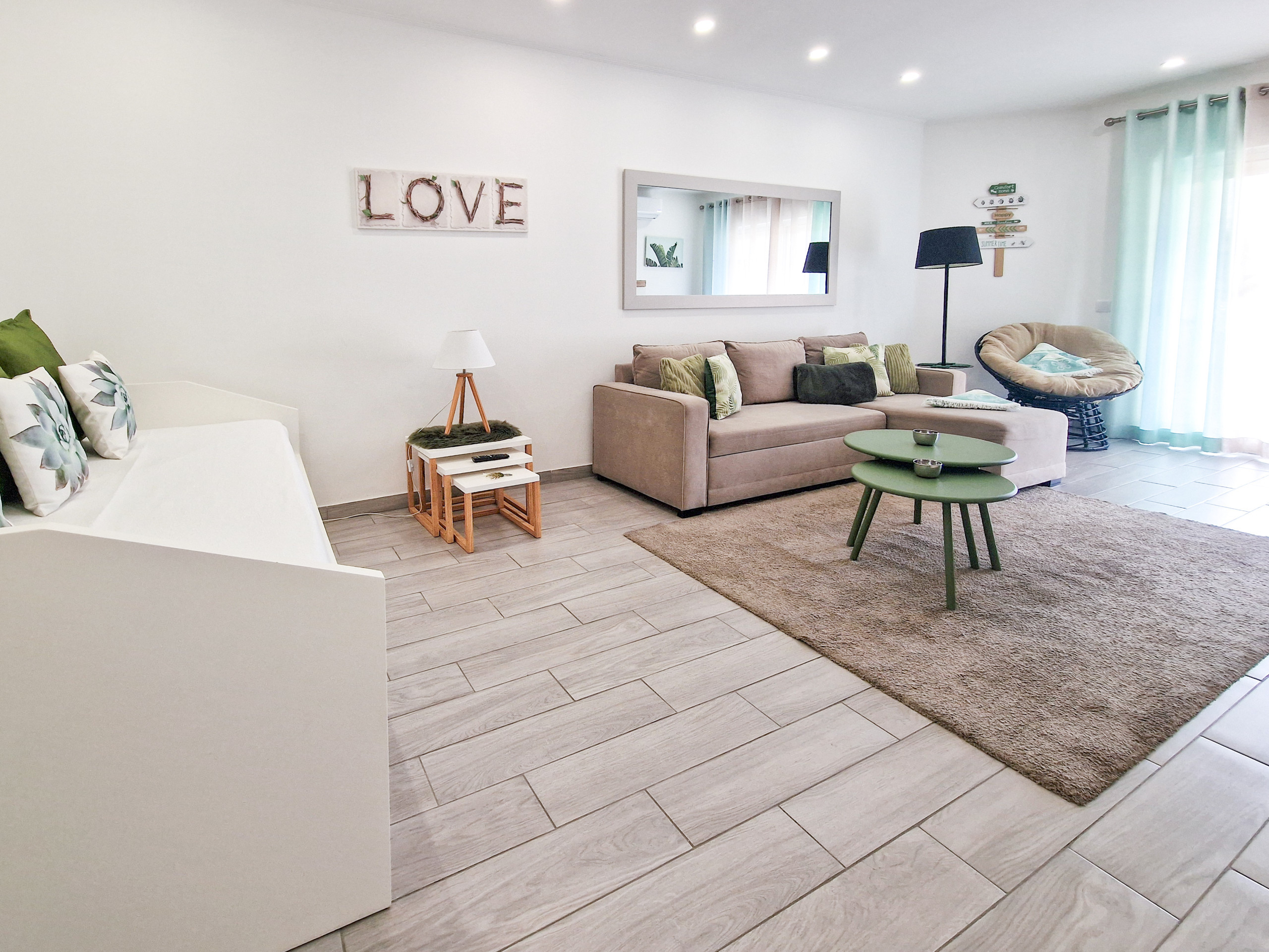 Propriété composée de : 1 chambre avec 1 lit double, grande cuisine, salon avec 2 canapés-lits (2 lits individuels combinés et un chaise longue), climatisation dans le salon et la chambre (chaud et froid), salle de bain, télévision par câble et WI-FI, balcon avec table, chaises et chaise longue, pour profiter de vos vacances.