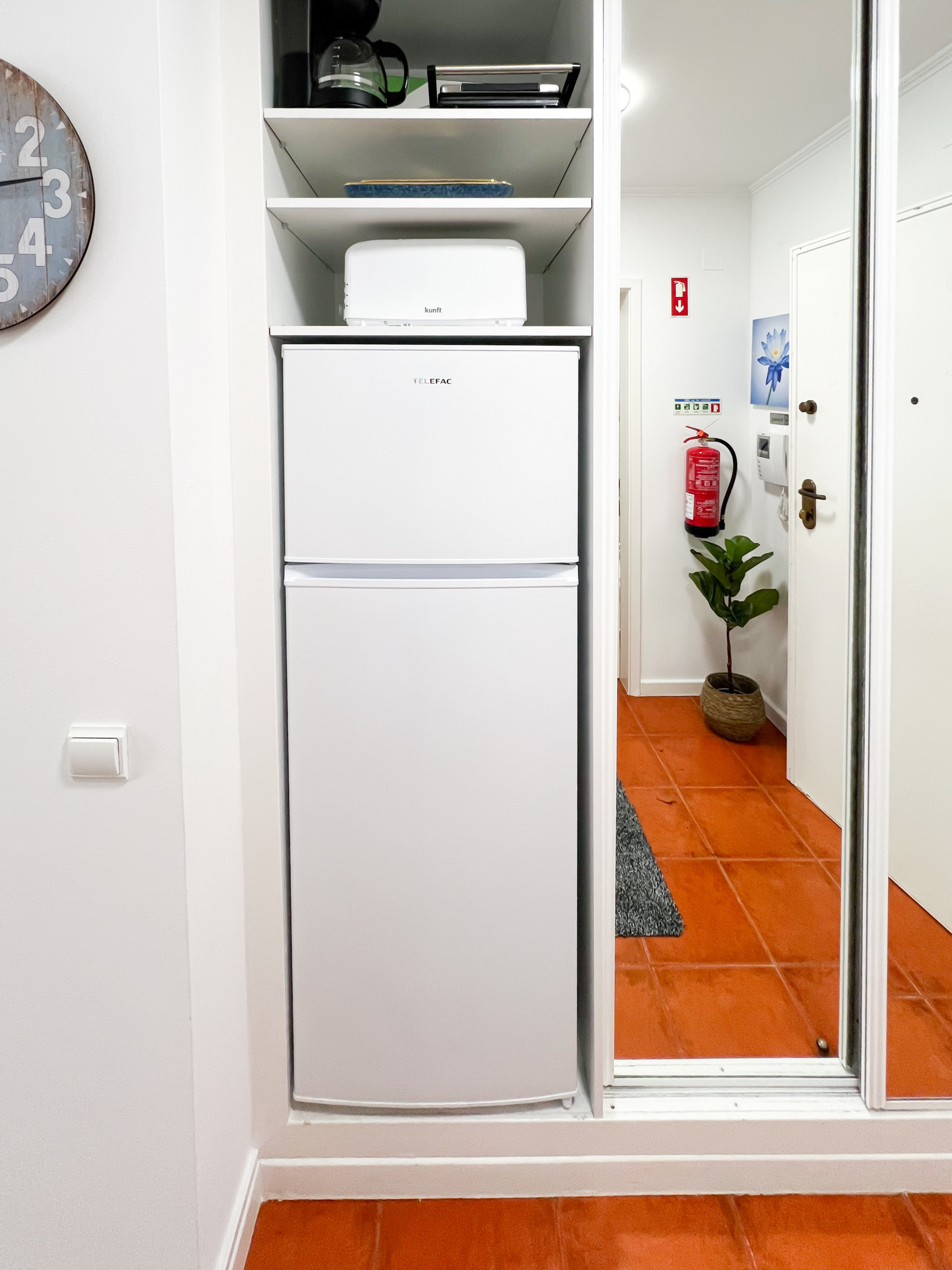 Propriété composée de : hall d'entrée avec placard, chambre avec lit double et climatisation (froid et chaud), salon avec canapé-lit double et kitchenette entièrement équipée.